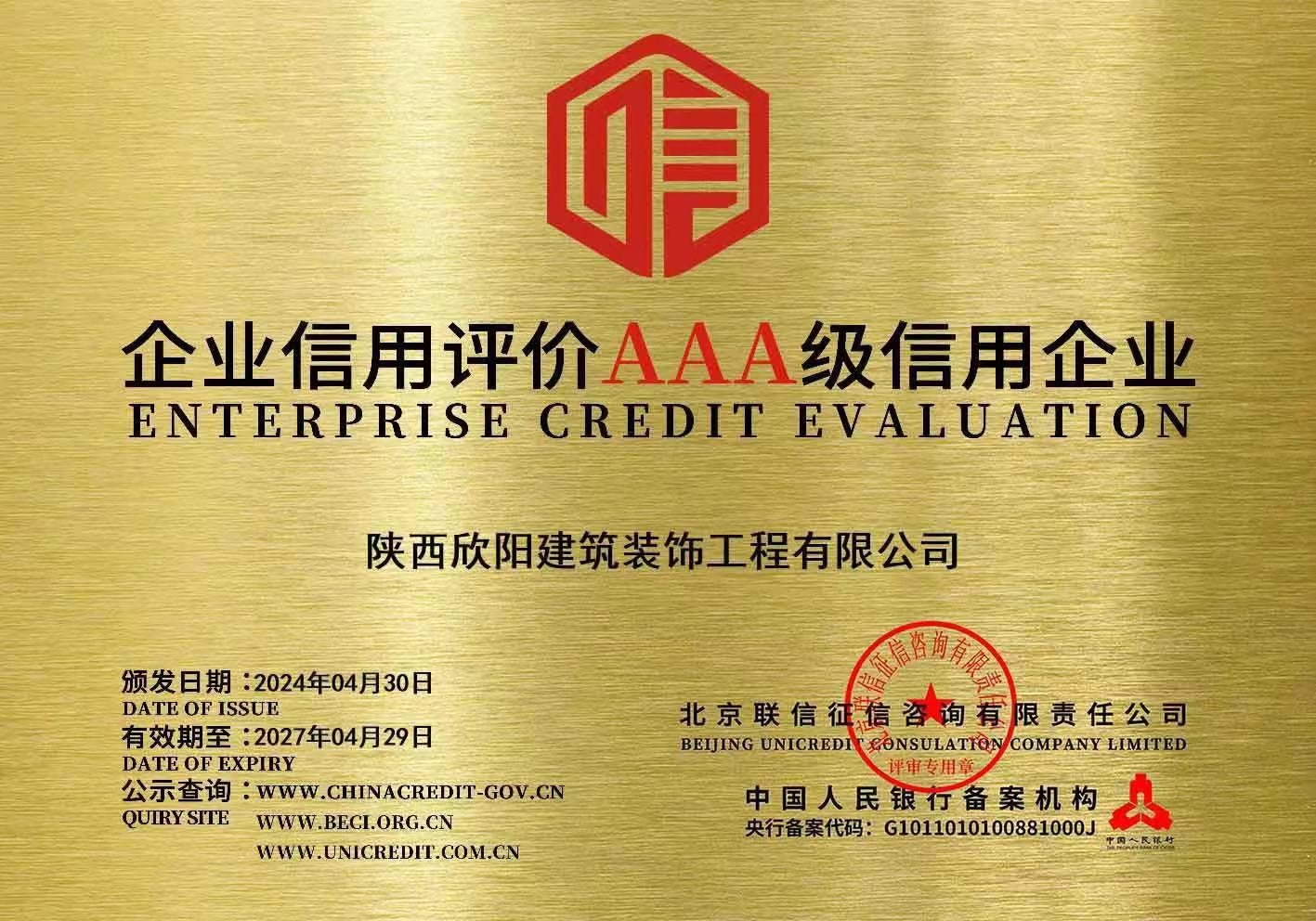 喜訊!我公司榮獲企業信用評價AAA級信用企業等榮譽認證 近日,我公司榮獲中國人民銀行備案機構-北京聯信征信咨詢有限公司頒發的企業信用評價AAA級信用企...